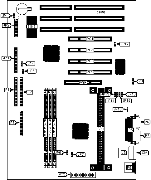 Note: Board accepts EDO & SDRAM memory. Maximum SDRAM is 384MB. Maximum EDO is 192MB. Does not support x 32 SDRAM in bank 2 or x 8 SDRAM in banks 0 & 1.