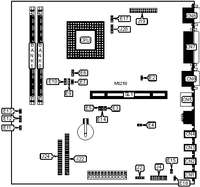 32-bit VESA local bus slot, 32-bit PCI slots (3), floppy drive interface, green PC connector, IDE interfaces (2), parallel port, serial ports (2)