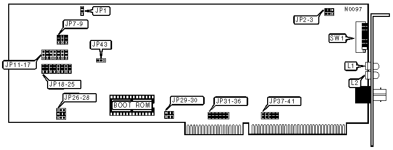 Note:When JP9 has pins 1 & 2 closed, the buffer size is 128KB, rather than 8KB. Use this setting when experiencing diffifulty with fast AT-class machines.