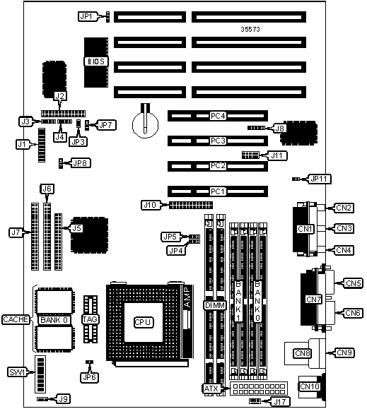 Note: Board accepts EDO memory.